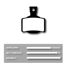 De Prodisc Kevlar compound is op organische basis. Door de toevoeging van Kevlar zijn de remblokken zeer duurzaam en bieden ze tevens een perfect remgevoel. Meer over de remeigenschappen van de organische remblokken van Cyclotech vindt u in onderstaande tabel: